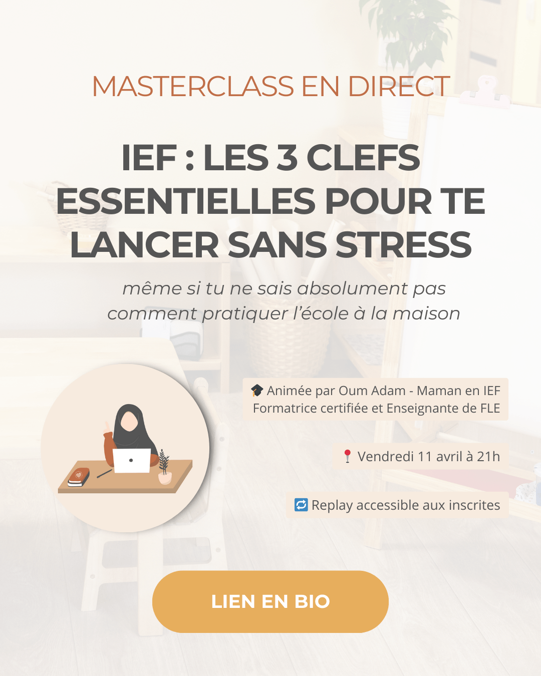 Je t’ai préparé une masterclass OFFERTE pour t’aider à poser les bases de l'instruction en famille afin de te lancer dans l'aventure avec clarté et sérénité 🎁